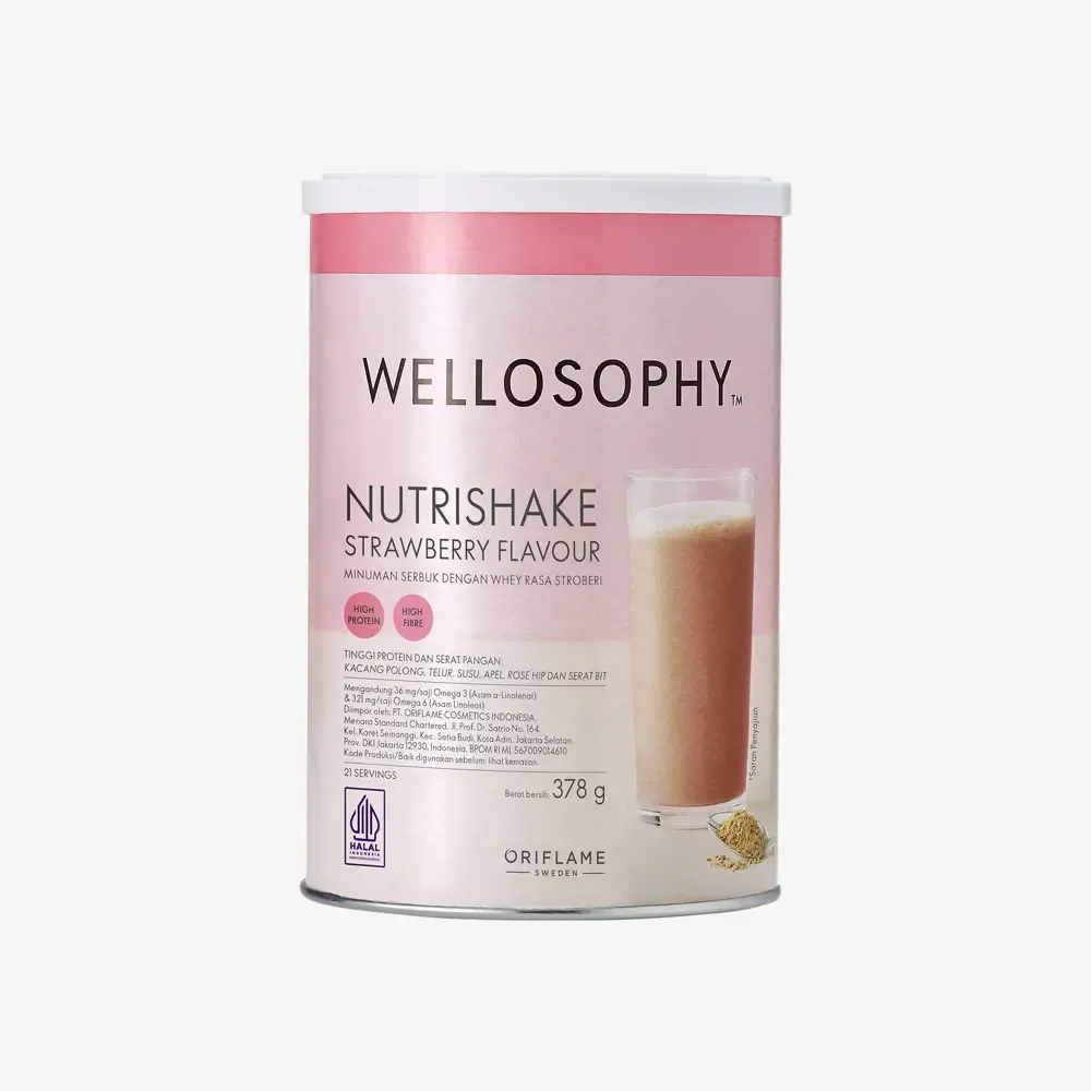 Wellosophy Nutrishake Strawberry Kemasan praktis yang dapat ditutup kembali! Kemasan praktis yang dapat ditutup kembali! Tinggi protein dan sumber serat pangan, dengan 70 Kalori per porsi (18 gr) jika dicampur dengan air. Nutrishake Wellosophy Strawberry Flavour adalah bubuk protein yang lezat dan serbaguna – pilihan tepat untuk bantu meningkatkan protein juga serat dalam asupan harianmu. Kamu bisa mengonsumsi Nutrishake Wellosophy secara rutin untuk meningkatkan kandungan protein pada resepmu, atau menikmatinya sebagai camilan bergizi sepanjang hari, setiap hari.