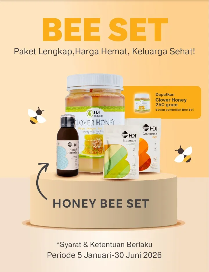 HONEY BEE Sweet Care for Your Family Dapatkan Clover Honey 250 gram senilai Rp199.000 Periode: 05 Januari – 30 Juni 2026 S&K: Tersedia di hdi.com dan Center HDI Promo berlaku kelipatan Berlaku untuk Bee maupun Enterpriser Pembelian tidak dapat menggunakan Nectar Tidak bisa mendapatkan poin Nectar (kecuali 5% Nectar Referral + 5% Birthday Nectar)