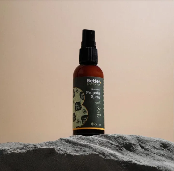 Kocok Better Botanics Buzz Away Propolis Spray sebelum digunakan.