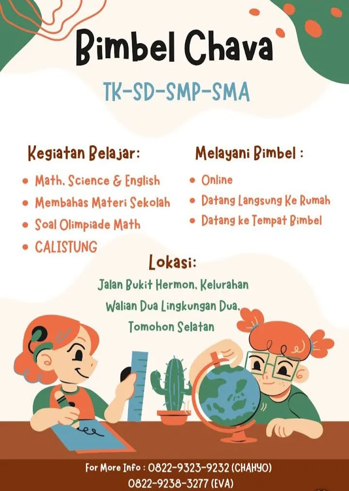 Melayanai privat/kelpmpok belajar,baik secara tatap muka (kunjungan ke rumah atau belajar di learning center) serta secara online.