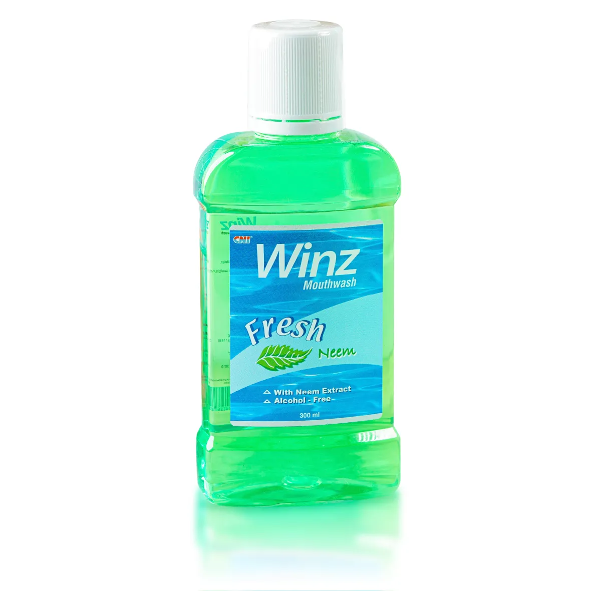 WINZ Mouthwash mengandung kombinasi ekstrak natural Neem dan bahan aktif Cetylpyridinium Chloride (CPC) efektif melawan bakteri penyebab plak dan bau mulut hingga 99%. Ekstrak Neem juga sangat baik untuk gusi sensitif. WINZ Mouthwash juga bebas alkohol sehingga mulut terbebas dari rasa terbakar saat berkumur, karena alkohol dapat menyebabkan mulut kering yang justru menimbulkan bau mulut. Dengan rasa mint membuat napas segar lebih lama, cocok bagi perokok atau pecandu kop.